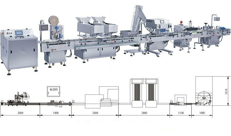 BP-120計数ラインは、自動ボトル整列、電子自動計数、乾燥剤挿入、自動キャッピング、自動アルミシール、自動ラベリングを含みます。